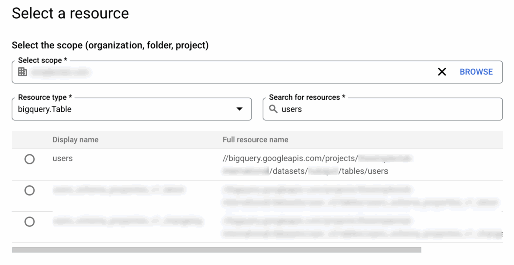 💡 hint: You can also use Policy Troubleshooter, or Policy Analyzer to see full resource names of specific resources you want to reference.